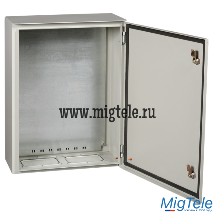 Сварной металлический корпус со съемной монтажной панелью. В исполнении IP54 климатическое исполнение У1 (возможность установки под открытым небом). ЩМП серии PRO со степенью защиты IP54 имеют на дверце уплотнение из двухкомпонентного герметика и пылевлагонепроницаемый замок. Также корпуса со степенью защиты IP54 имеют защитный козырек и защитный желоб для предотвращения проникновения грязи и воды при открытии дверцы. Дверца корпуса запирается на замок. Ключ замка имеет единый секрет.