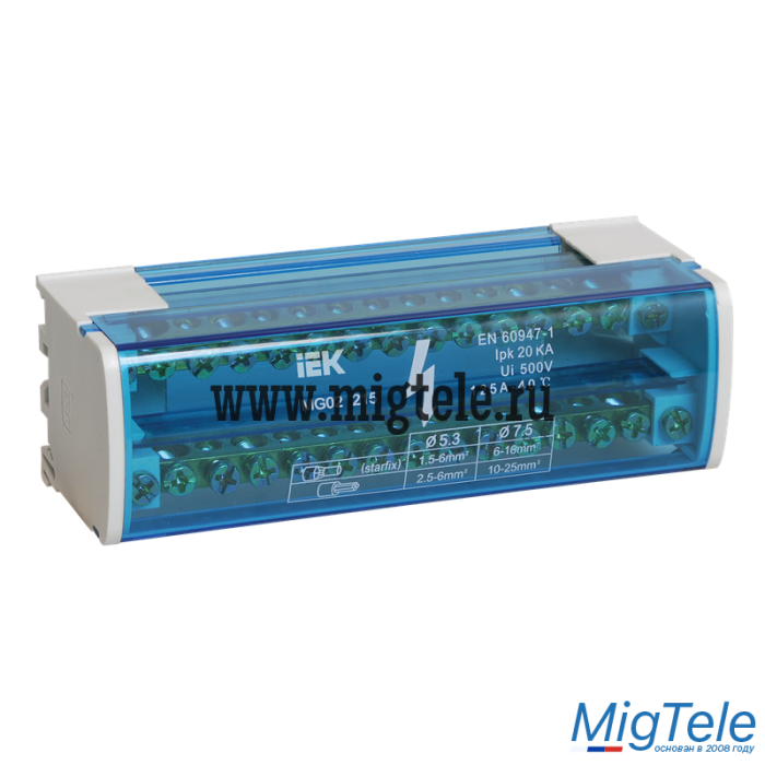 Шины выполнены из высококачественной латуни, изолирующая задняя панель и прозрачная защитная крышка выполнены из самозатухающего пластика.