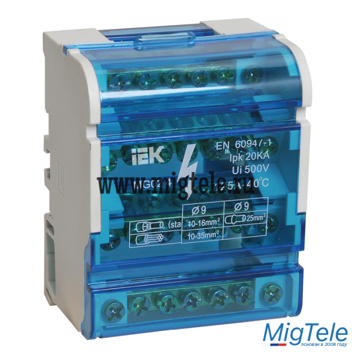 Шины выполнены из высококачественной латуни, изолирующая задняя панель и прозрачная защитная крышка выполнены из самозатухающего пластика.