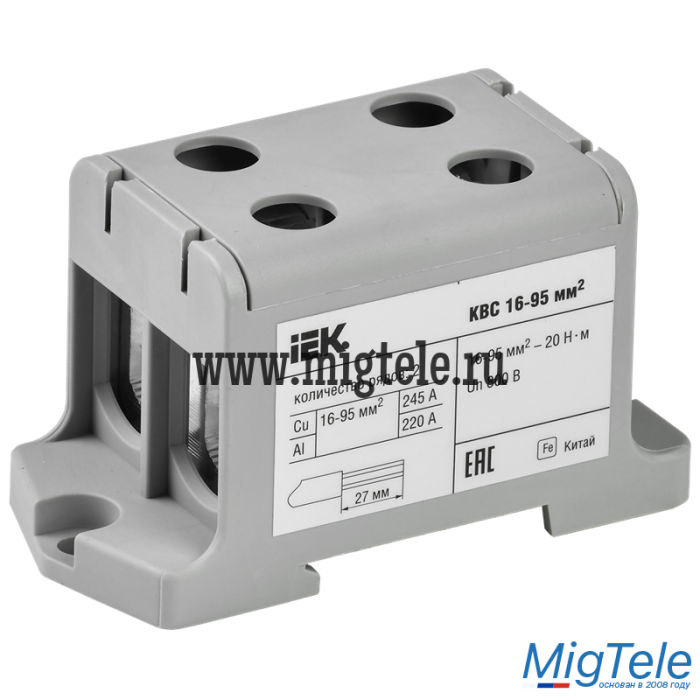 Клемма вводная силовая КВС 16-95 кв.мм. 2-рядная серая IEK |