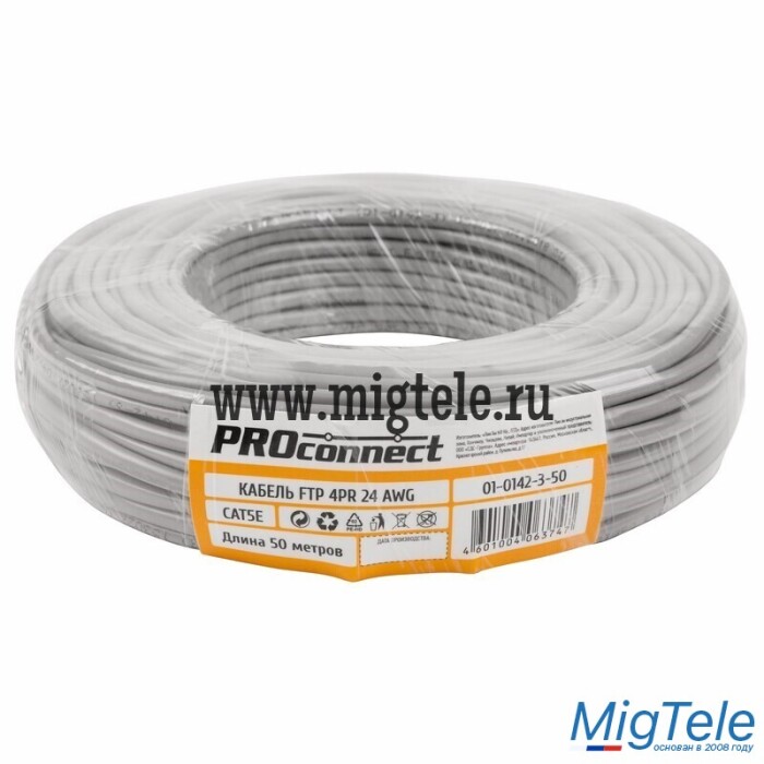Кабель витая пара F/UTP серого цвета PROconnect предназначен для создания локальных сетей общего назначения, домашних сетей, сетей малого бизнеса, компьютерных сетей, сетей передачи данных, узкоспециализированных сетей. Применяется для подключения устройств охранной системы, телефонии, интернета, цифрового телевидения и т.д. Служит для прокладки внутри зданий. Длина 50 м.