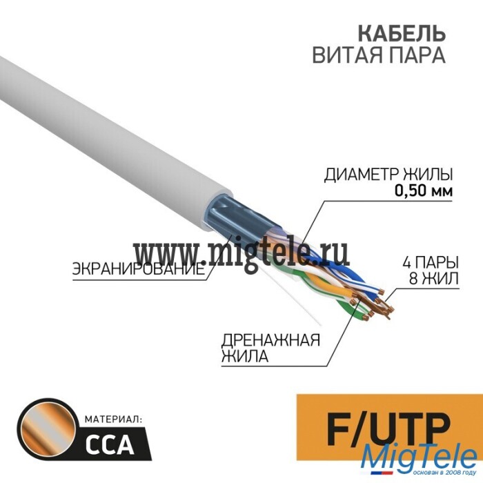 Описание Rexant 01-0142-3-50 Кабель витая пара омедненный, F/UTP, CAT 5e
