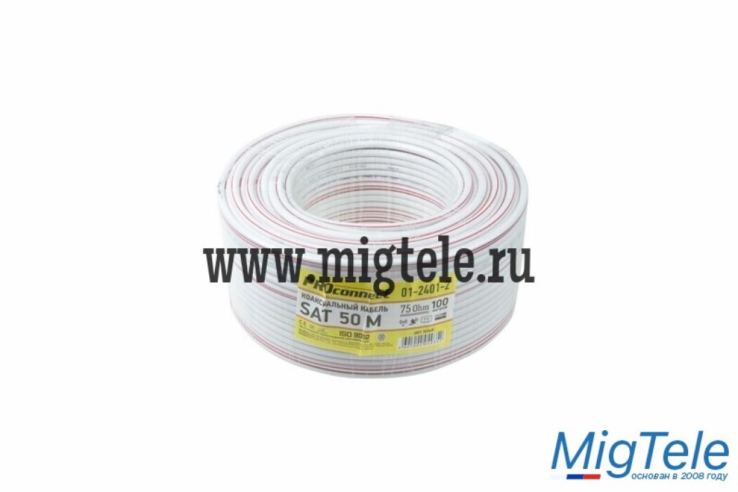 Кабель SAT 50 M, CCS/Al/Al, 75%, 75 Ом белый PROconnect коаксиальный радиочастотный со вспененной полиэтиленовой изоляцией и в ПВХ оболочке. Является самым распространенным решением для подключения внутренних и межблочных соединений общепромышленных и бытовых радиотехнических устройств, для подключения систем телевидения, а также для подключения видеокамер наружного и внутреннего наблюдения.