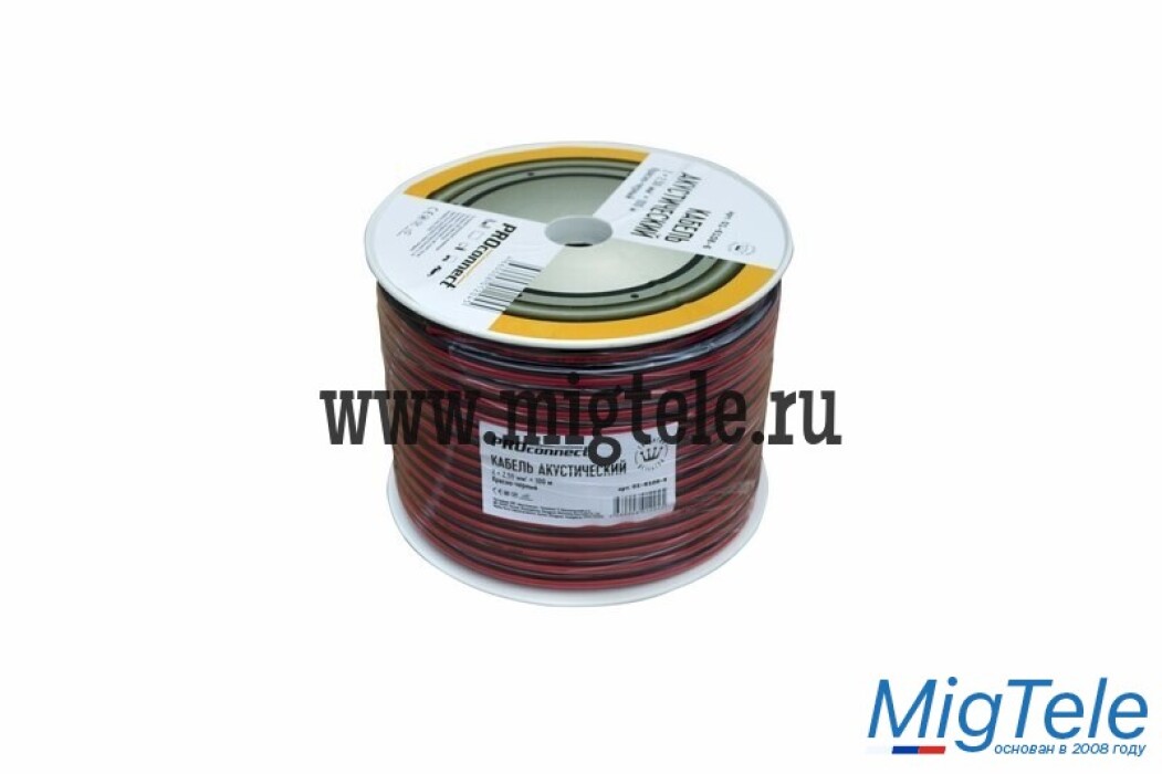 Кабель акустический 2х2,50 мм² PROconnect состоит из двух параллельных многожильных проводников в изоляции из поливинилхлоридного пластиката красного и черного цвета. Разделительное основание позволяет обеспечить разделение проводников кабеля без повреждения изоляции и оголения жил.