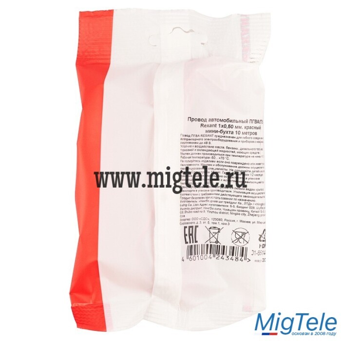 Описание Rexant 01-6514-2-10 Провод автомобильный ПГВА/ПВАМ 1х0,50 мм
