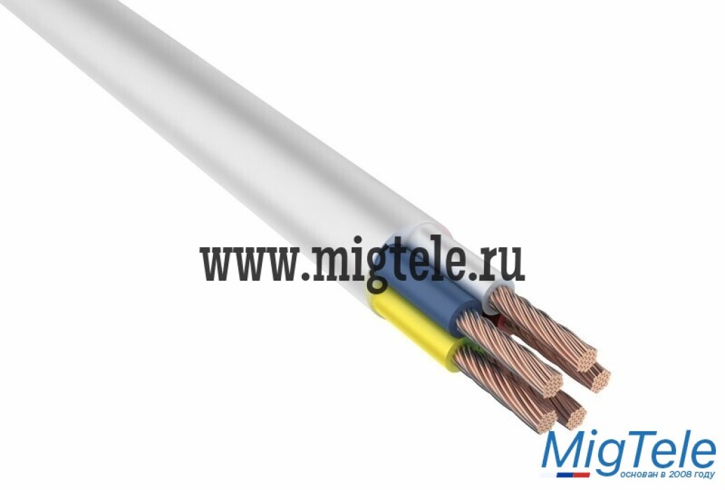 Оболочка кабеля ПВС — ПВХ пластикат, наложена с заполнением промежутков между жилами, придавая проводам круглую форму.