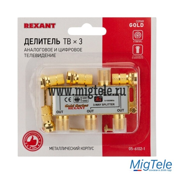 Описание Rexant 05-6102-1 Делитель ТВ х 3 + 4шт