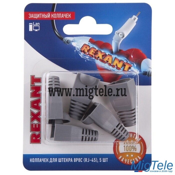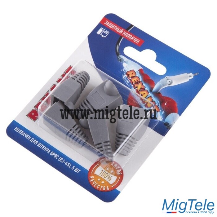 Колпачок защитный для штекера 8Р8С (Rj-45), серый (5шт), REXANT