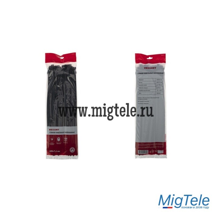 Описание Rexant 07-0401-8 Хомут-стяжка кабельная 400x7,6мм