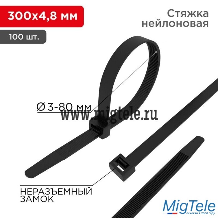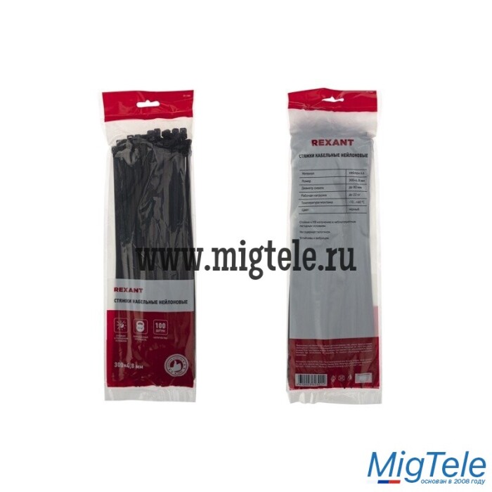 Описание Rexant 07-1303 Хомут-стяжка кабельная 300x4,8мм