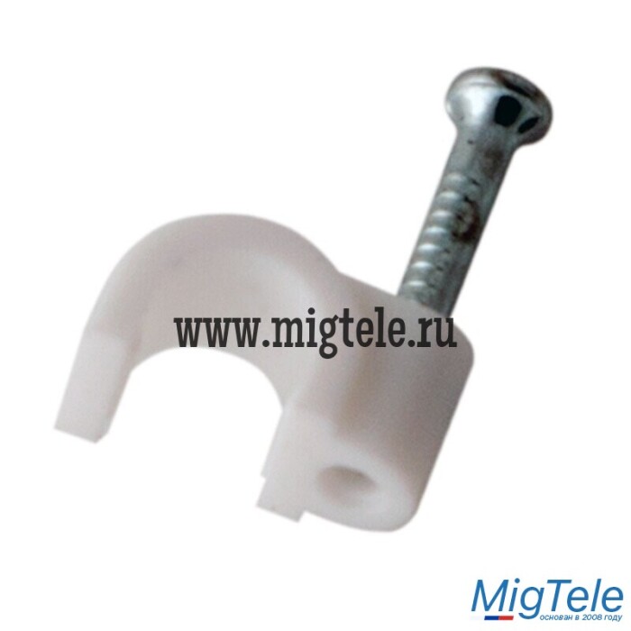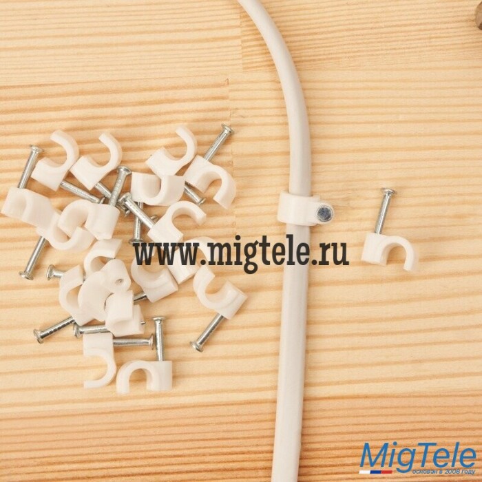 Высококачественный круглый крепеж кабеля REXANT представляет собой дугообразную пластиковую скобу диаметром 5 мм с гвоздём. Используется для мгновенного, а главное надёжного крепления проводов и кабелей к поверхностям стен, несущих конструкций и потолков. Гвоздик выполнен из закаленного металла, что позволит надежно забивать его даже в плотные и твердые материалы, не опасаясь сломать или погнуть гвоздь.