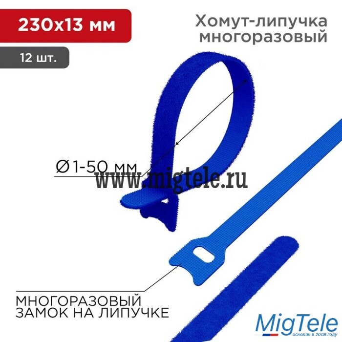 Описание Rexant 07-7215 Хомут–липучка многоразовый 230х13мм