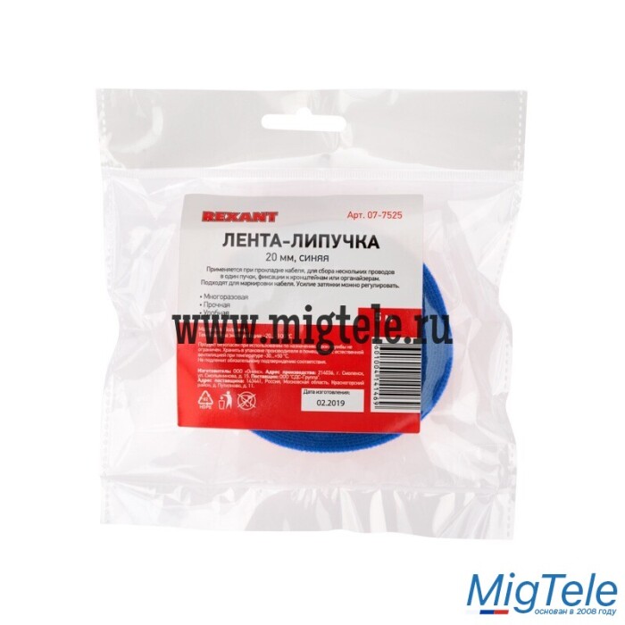 Описание Rexant 07-7525 Лента-липучка многоразовая 5 м х 20 мм