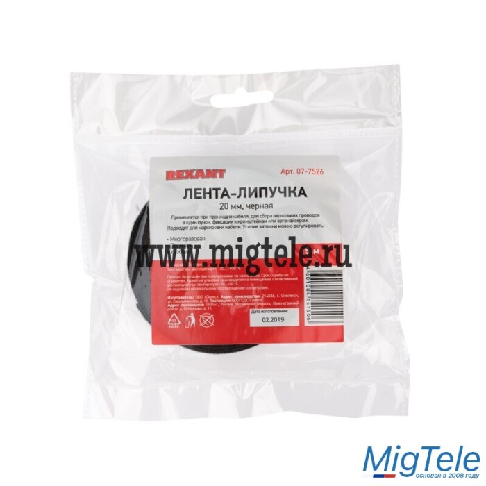 Описание Rexant 07-7526 Лента-липучка многоразовая 5 м х 20 мм