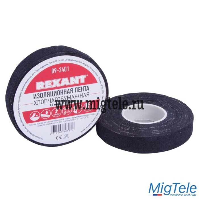 Описание Rexant 09-2401 Изолента х/б 18х0,35 мм