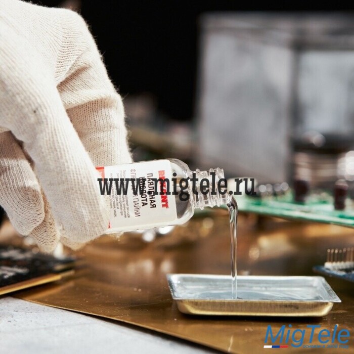 Данный низкотемпературный флюс применяется при пайке деталей или поверхностей припоями оловянно-свинцовой группы в температурном диапазоне 290...350 ℃. После пайки требуется отмывка остатков кислоты 5 % раствором кальцинированной соды.