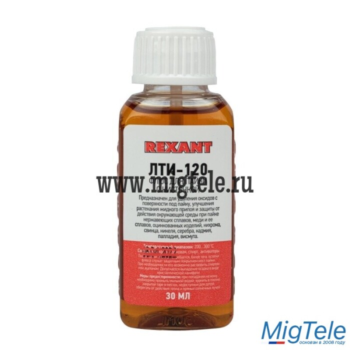 Флюс ЛТИ-120 REXANT предназначен для удаления оксидов с поверхности под пайку, улучшения растекания жидкого припоя и защиты нержавеющих сплавов, меди и ее сплавов, оцинкованных изделий, нихрома, свинца, никеля, серебра, кадмия, палладия, висмута от воздействия внешней среды. Изготовлен в соответствии с ТУ 84-406-73.