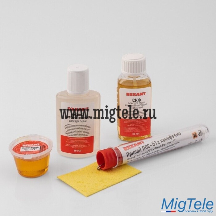 Припой м канифолью, губка для очистки, канифоль сосновая, флюс СКФ, флюс ОК