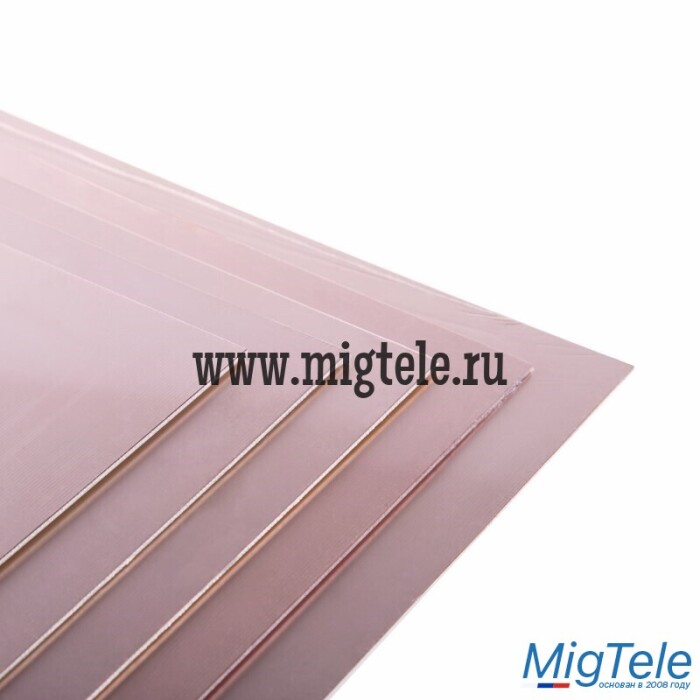 Стеклотекстолит 1-сторонний 250х350x1.5 мм 35/00 (35 мкм) REXANT представляет собой композицию стеклоткани и связующего материала на основе эпоксидных смол, а также с одной стороны покрытый медной электролитической гальваностойкой фольгой толщиной 35 мкм.