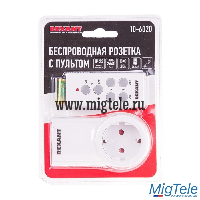 Описание Rexant 10-6020 Радиоуправляемая розетка c пультом RX-001