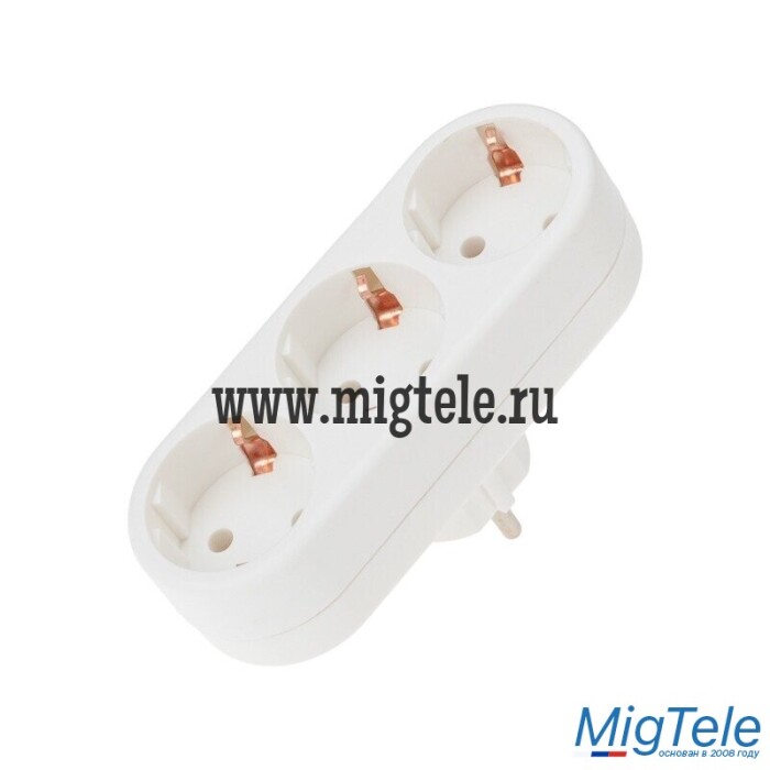 Тройник электрический линейный предназначен для подключения к электрическим сетям с напряжением 220 В. С его помощью вы сможете подключить сразу три электроприбора к одной розетке, будь то холодильник, электрическая плита, электрический чайник, лампа, вентилятор, светильник и другие приборы бытового назначения.