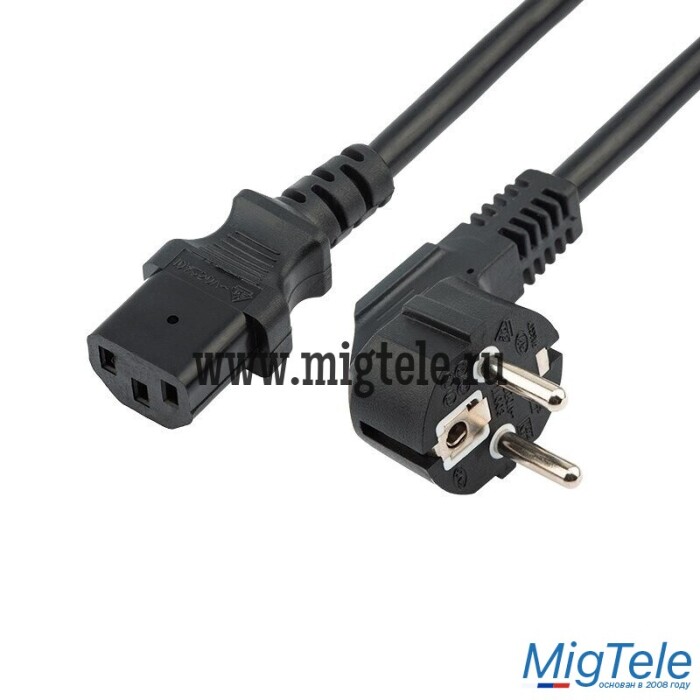 Шнур сетевой евро 0.75 мм² 3 м (PE) (с заземлением) REXANT предназначен для подключения к сети переменного тока (AC) с напряжением 220 B стационарных персональных компьютеров, мониторов, ИБП, принтеров и других периферийных устройств, имеющих штыревой разъем типа C14.
