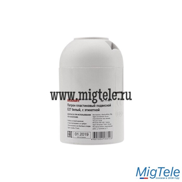 Описание Rexant 11-8819 Патрон пластиковый термостойкий подвесной Е27