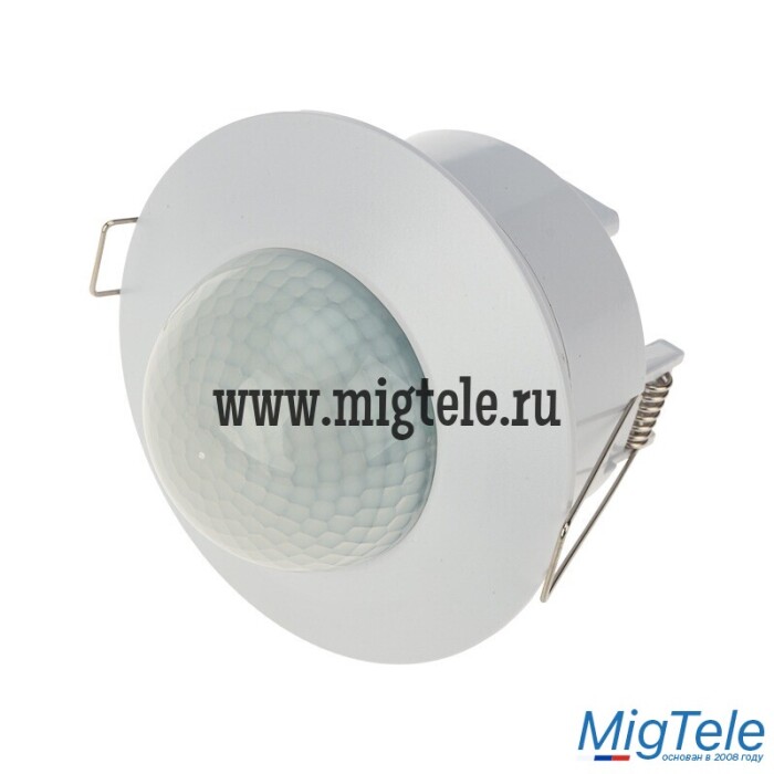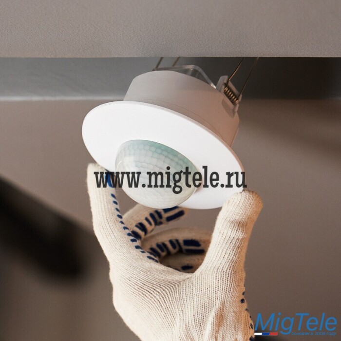 Датчик движения точечный встраивается в подвесной потолок с диаметром установочного отверстия 75 мм. Визуально датчик гармонично встраивается в обстановку и не выделяется на потолке.