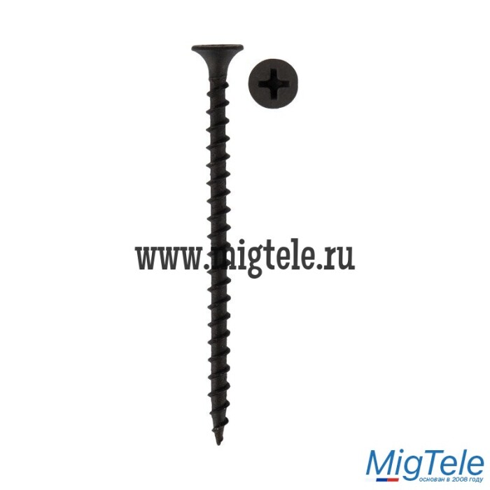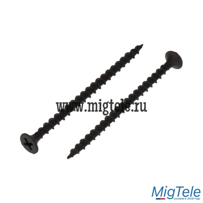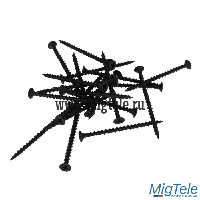 Крупная резьба позволяет надежно закрепить саморез в таких мягких материалах, как древесина, пластик, фанера, ДСП и т. д.