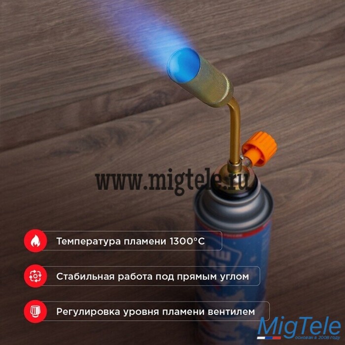 Используется совместно со стандартным газовым баллоном с цанговым креплением 220, 300 гр и т.д.
