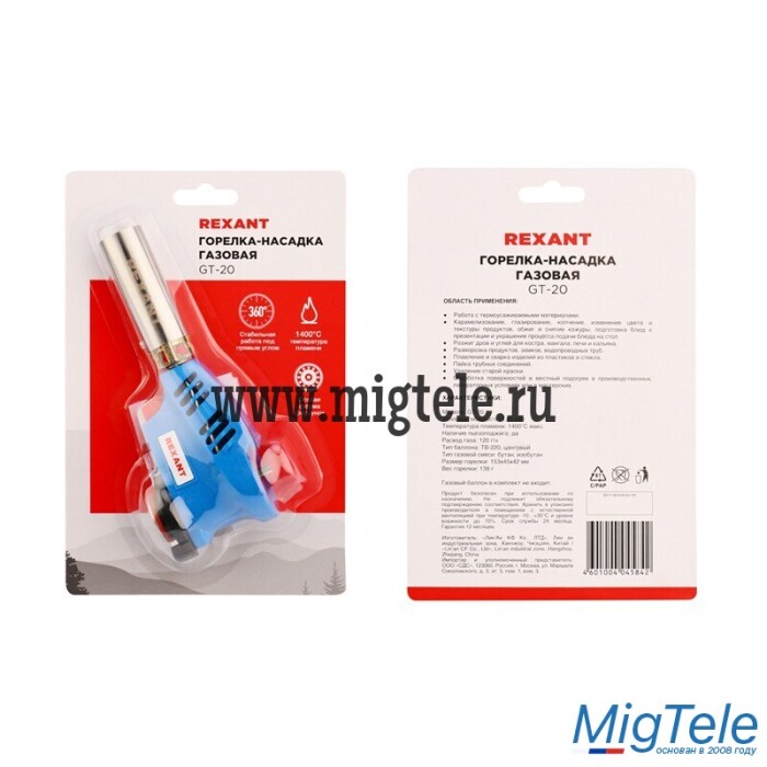 Описание Rexant 12-0020 Газовая горелка-насадка GT-20