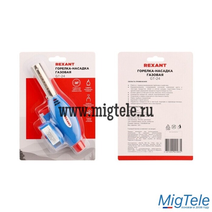 Описание Rexant 12-0024 Газовая горелка-насадка GT-24