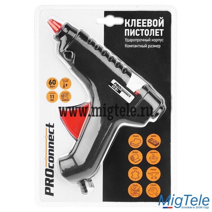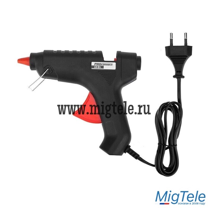 Пистолет клеевой PROconnect (60 Вт, Ø11 мм) предназначен для прочной фиксации поверхностей с помощью расплавленной клеевой массы.