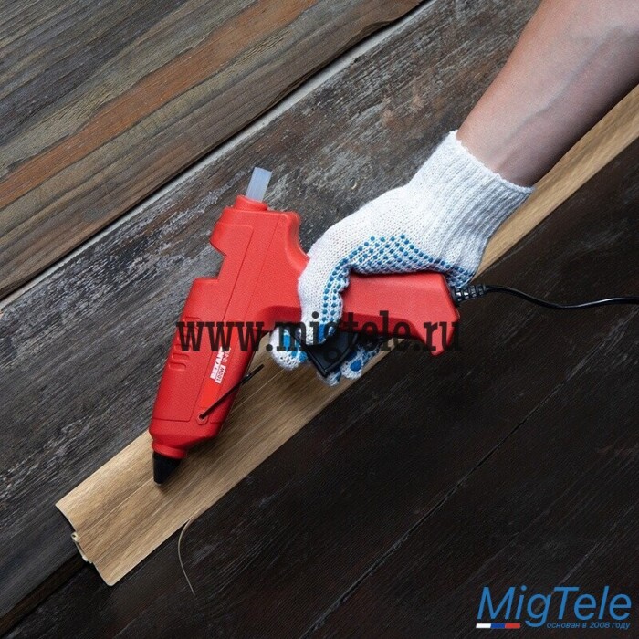 Принцип работы: клеевой стержень плавится в металлической камере с помощью нагревательного устройства и для точного дозированного нанесения при нажатии на курок подается из сопла на склеиваемую поверхность. Используется в моделировании, рукоделии, при выполнении мелкого ремонта, для изготовления упаковочной и сувенирной продукции, монтажа электрических плат, декорирования, и т.п.