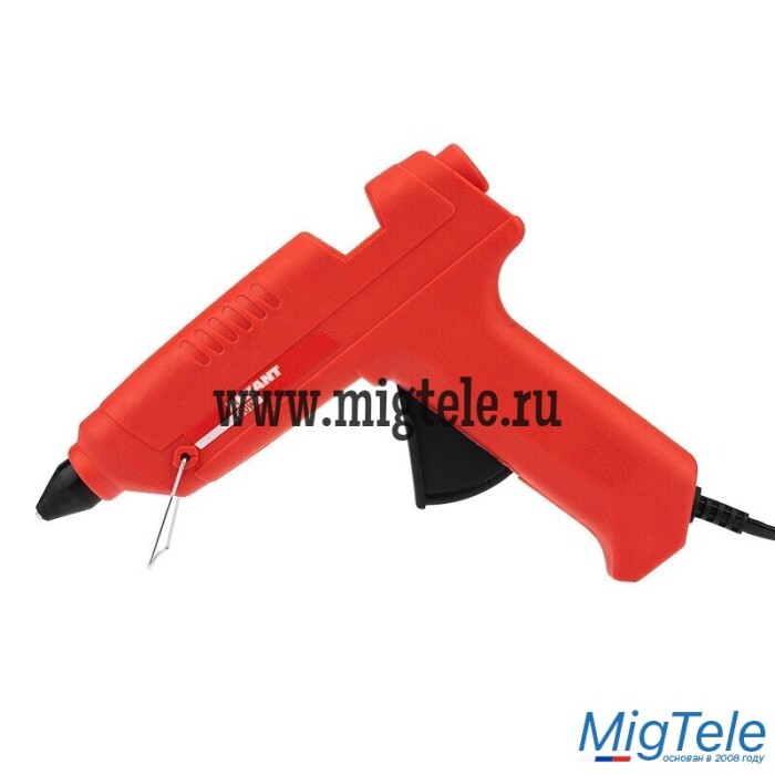 Корпус клеевого пистолета изготовлен из ударопрочной пластмассы и имеет скобу для установки в режиме ожидания.