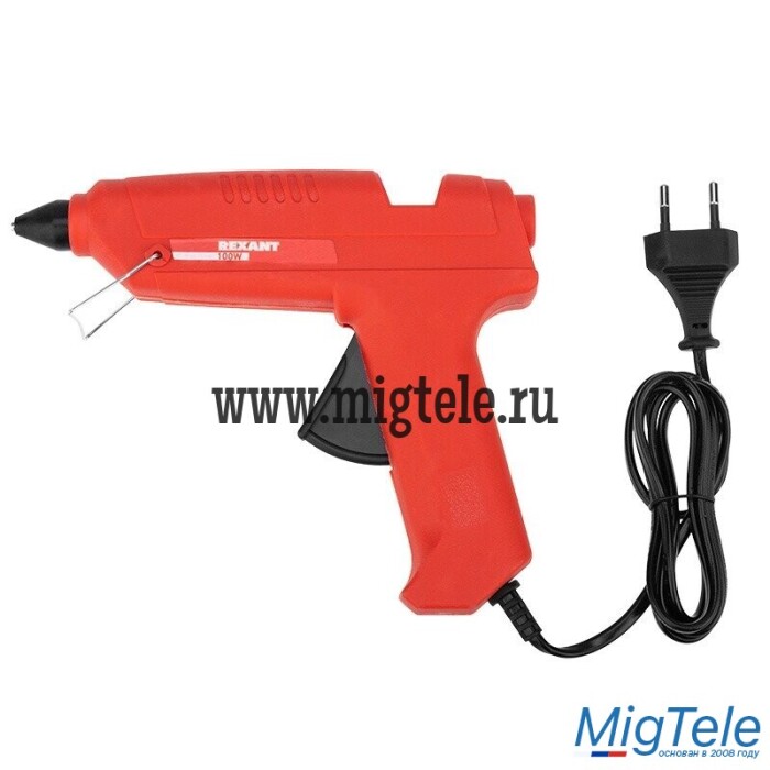 Пистолет клеевой REXANT (100 Вт, Ø11 мм) предназначен для прочной фиксации поверхностей с помощью расплавленной клеевой массы.