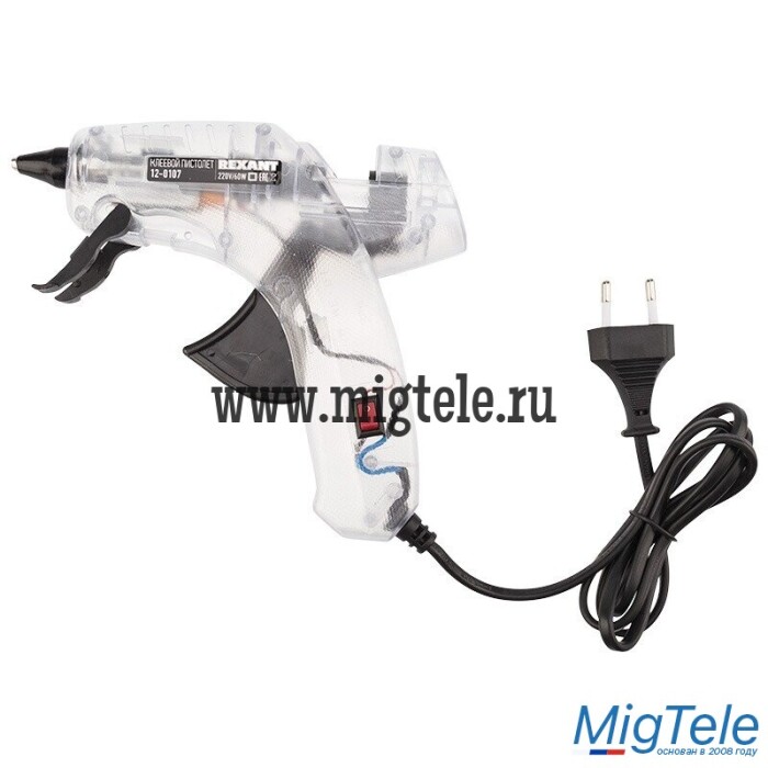 Пистолет клеевой REXANT (60 Вт, Ø11 мм) предназначен для прочной фиксации поверхностей с помощью расплавленной клеевой массы.