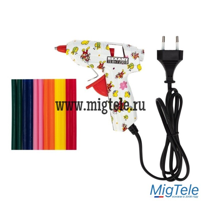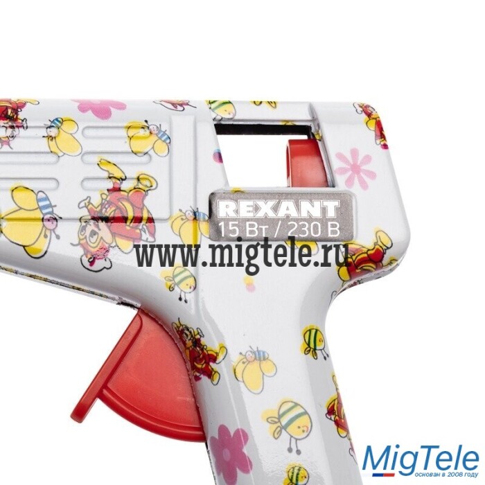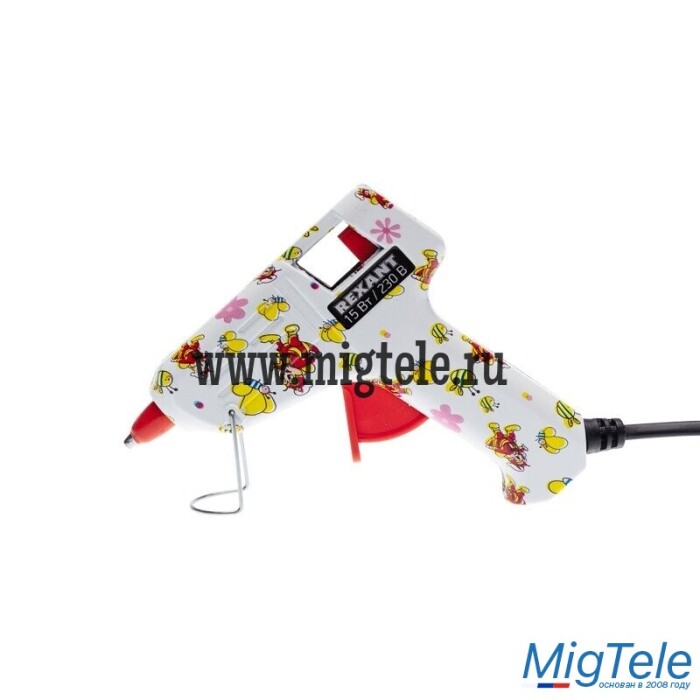 Пистолет клеевой REXANT (15 Вт, Ø7 мм) предназначен для прочной фиксации поверхностей с помощью расплавленной клеевой массы.