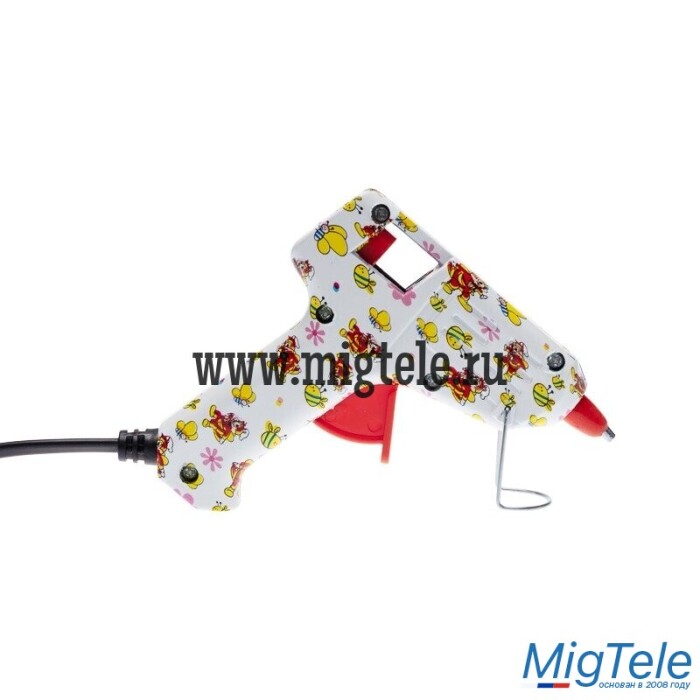 Корпус клеевого пистолета изготовлен из ударопрочной пластмассы и имеет скобу для установки в режиме ожидания.