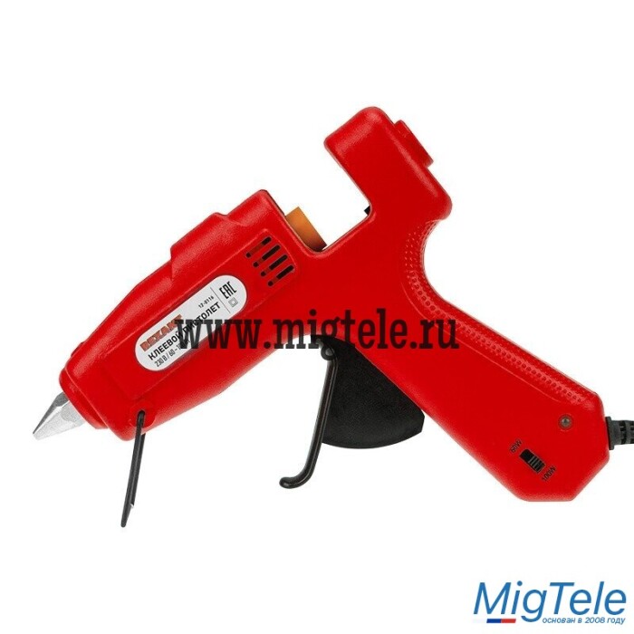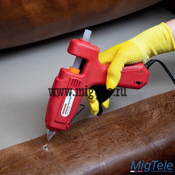 Принцип работы: клеевой стержень плавится в металлической камере с помощью нагревательного устройства и для точного дозированного нанесения при нажатии на курок подается из сопла на склеиваемую поверхность. Используется в моделировании, рукоделии, при выполнении мелкого ремонта, для изготовления упаковочной и сувенирной продукции, монтажа электрических плат, декорирования, и т.п.