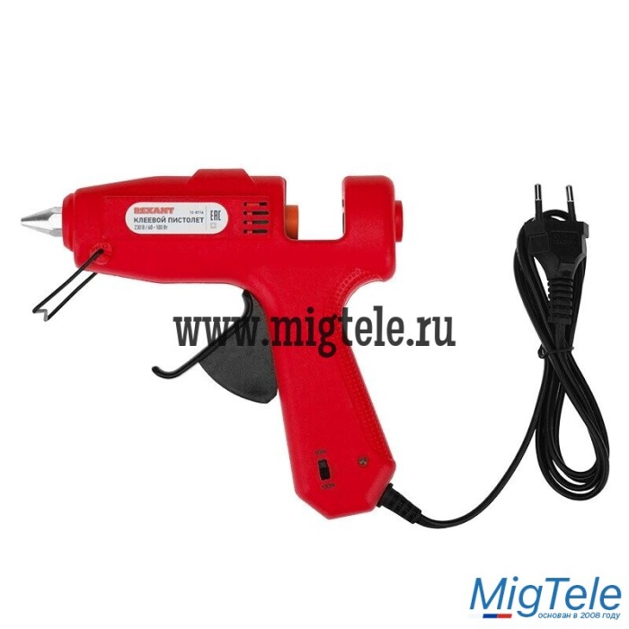 Пистолет клеевой REXANT (60-100 Вт, Ø11 мм) предназначен для прочной фиксации поверхностей с помощью расплавленной клеевой массы.