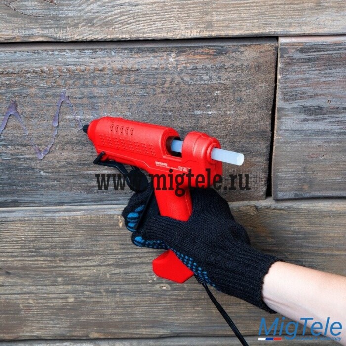 Принцип работы: клеевой стержень плавится в металлической камере с помощью нагревательного устройства и для точного дозированного нанесения при нажатии на курок подается из сопла на склеиваемую поверхность. Используется в моделировании, рукоделии, при выполнении мелкого ремонта, для изготовления упаковочной и сувенирной продукции, монтажа электрических плат, декорирования, и т.п.