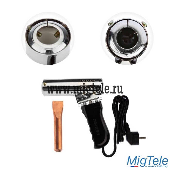 Медное жало выполнено в форме клина (лопатки), в случае необходимости его можно легко и быстро заменить (сменное жало в комплект не входит).