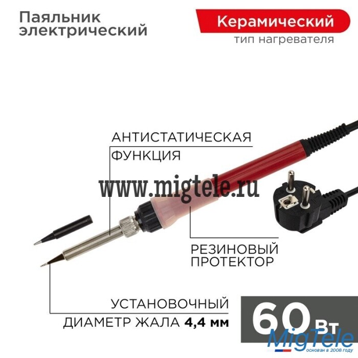 Описание Rexant 12-0611 Паяльник с керам. нагревателем Japan type, 60Вт