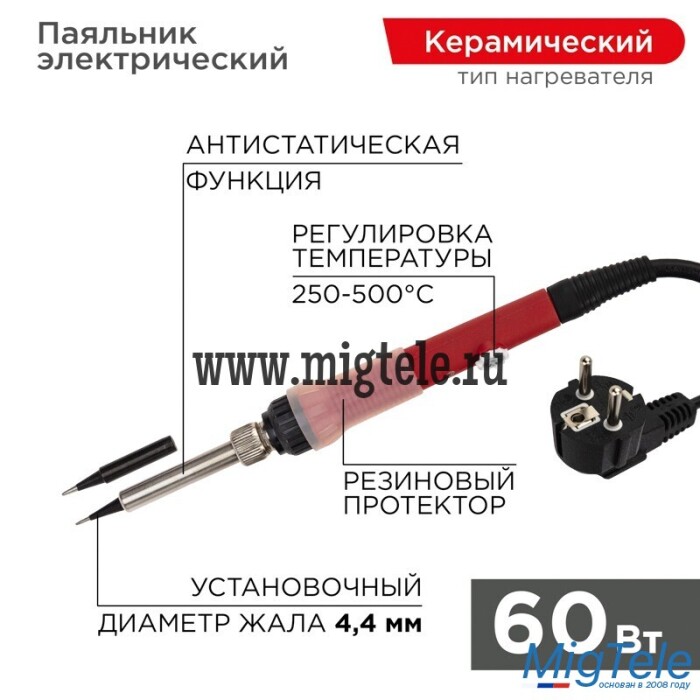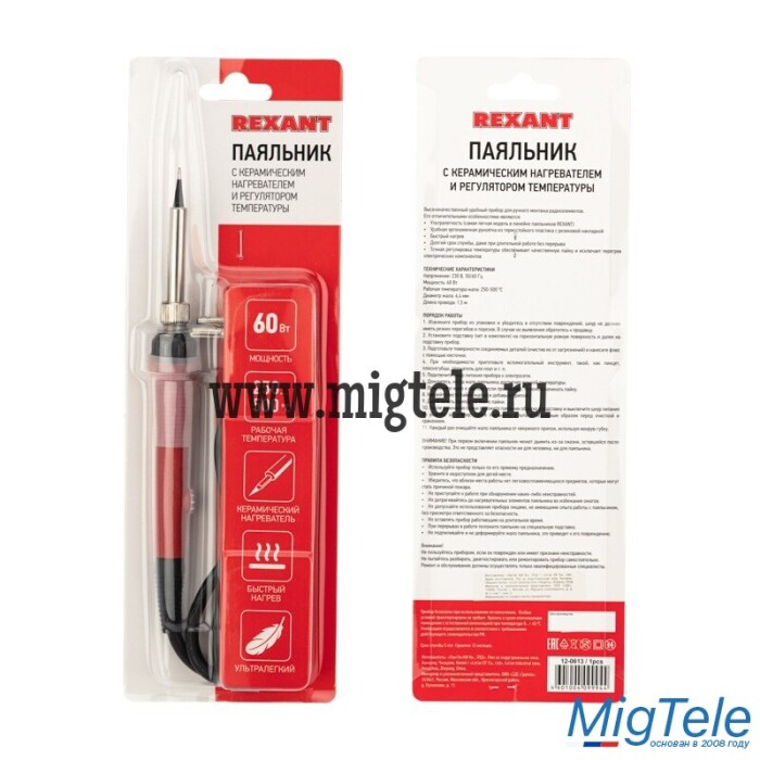 Описание Rexant 12-0613 Паяльник с керам. нагревателем