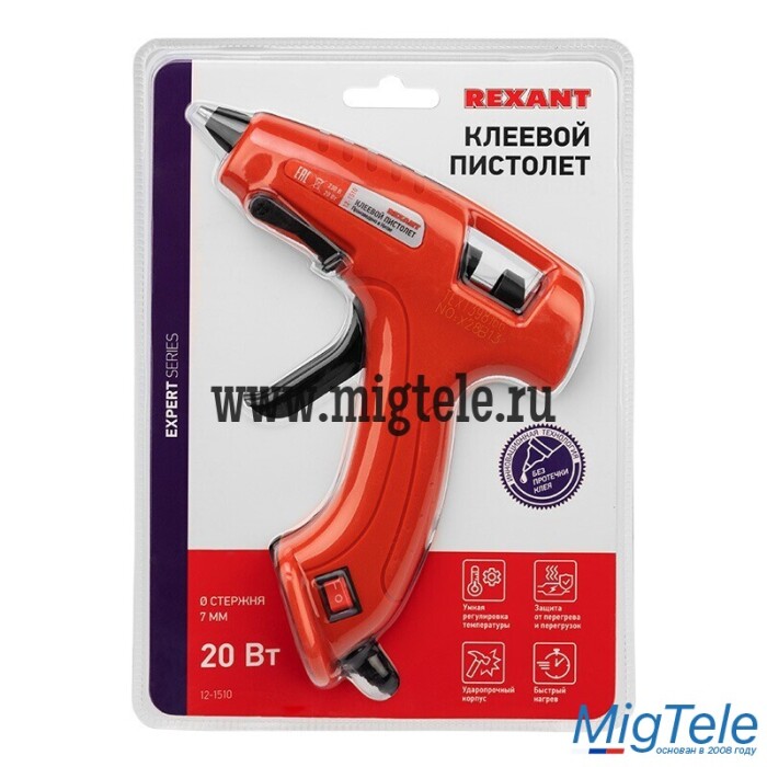 Rexant 12-1510 Пистолет клеевой, 20Вт, ?7мм