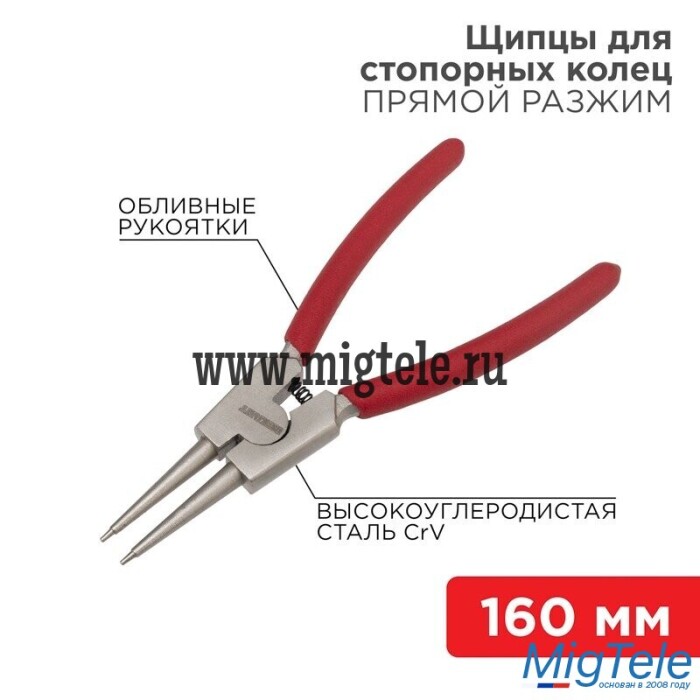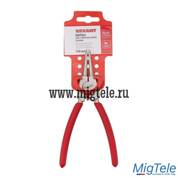Описание Rexant 12-4639 Щипцы для стопорных колец 160 мм