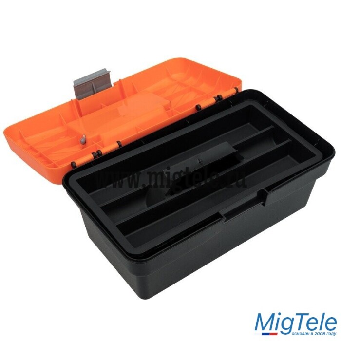 Ящик для инструментов PROconnect выполнен из прочного пластика. Обладает съемным 3-секционным лотком с удобной ручкой. Ящик предназначен для хранения и транспортировки инструментов, крепежных изделий, расходных материалов, в том числе различных предметов, схожих по габаритам. На крышке есть складная ручка. Удобный замок можно открыть одной рукой.
