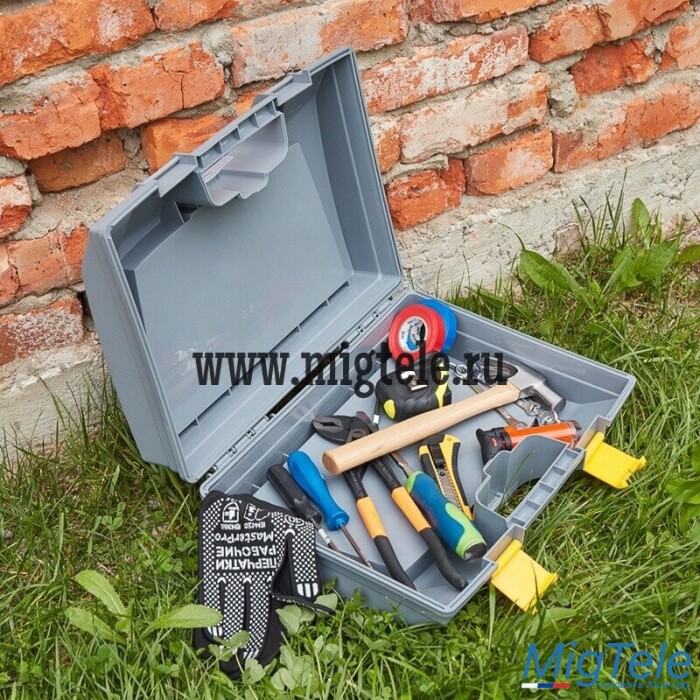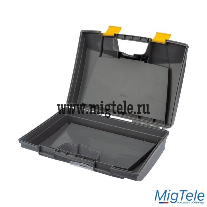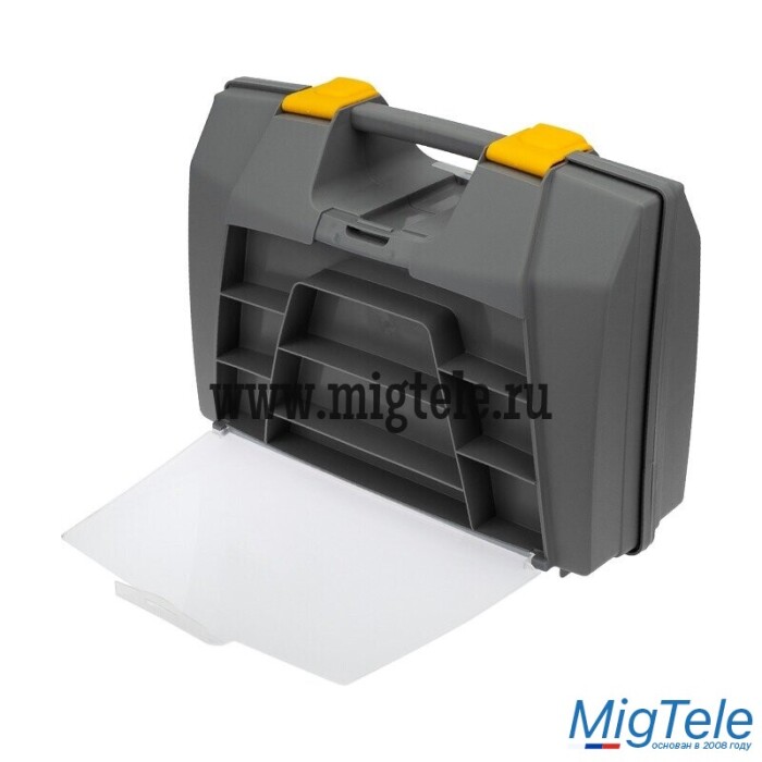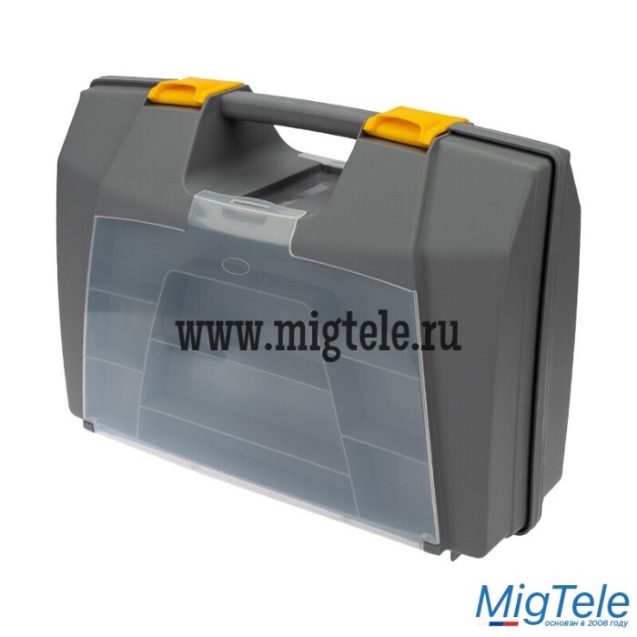 Ящик для инструментов PROconnect выполнен из прочного пластика. Обладает 1 основным отсеком и по 8 отделений с каждой стороны по бокам кейса для небольших принадлежностей. Функциональный ящик предназначен для хранения и транспортировки инструментов, крепежных изделий, расходных материалов, в том числе различных предметов, схожих по габаритам. Удобные замки плотно прижимают крышки кейса к корпусу; открываются и закрываются одной рукой. Полупрозрачные крышки обеспечивают дополнительное удобство при хранении.