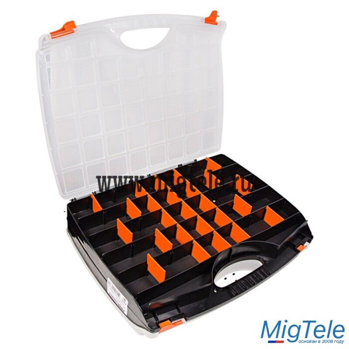 Двухсторонний универсальный ящик PROconnect выполнен из прочного пластика. Предназначен для хранения ручного инструмента, разъемов, расходных материалов, крепежа и рыболовных снастей. Регулируемые секции по размеру и количеству позволяют наилучшим образом организовать пространство для быстрого доступа и хранения инструментов.
